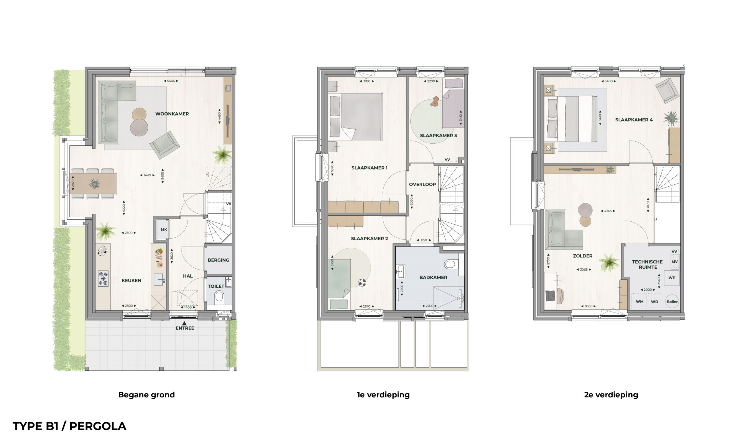 Op de eerste verdieping liggen drie comfortabele slaapkamers en een modern ingerichte badkamer. De tweede verdieping biedt nog een vierde slaapkamer en een aparte techniekruimte. De rest van de zolder kun je helemaal naar eigen idee vormgeven: een werkplek, hobbyruimte of gewoon extra opbergruimte — het kan allemaal.