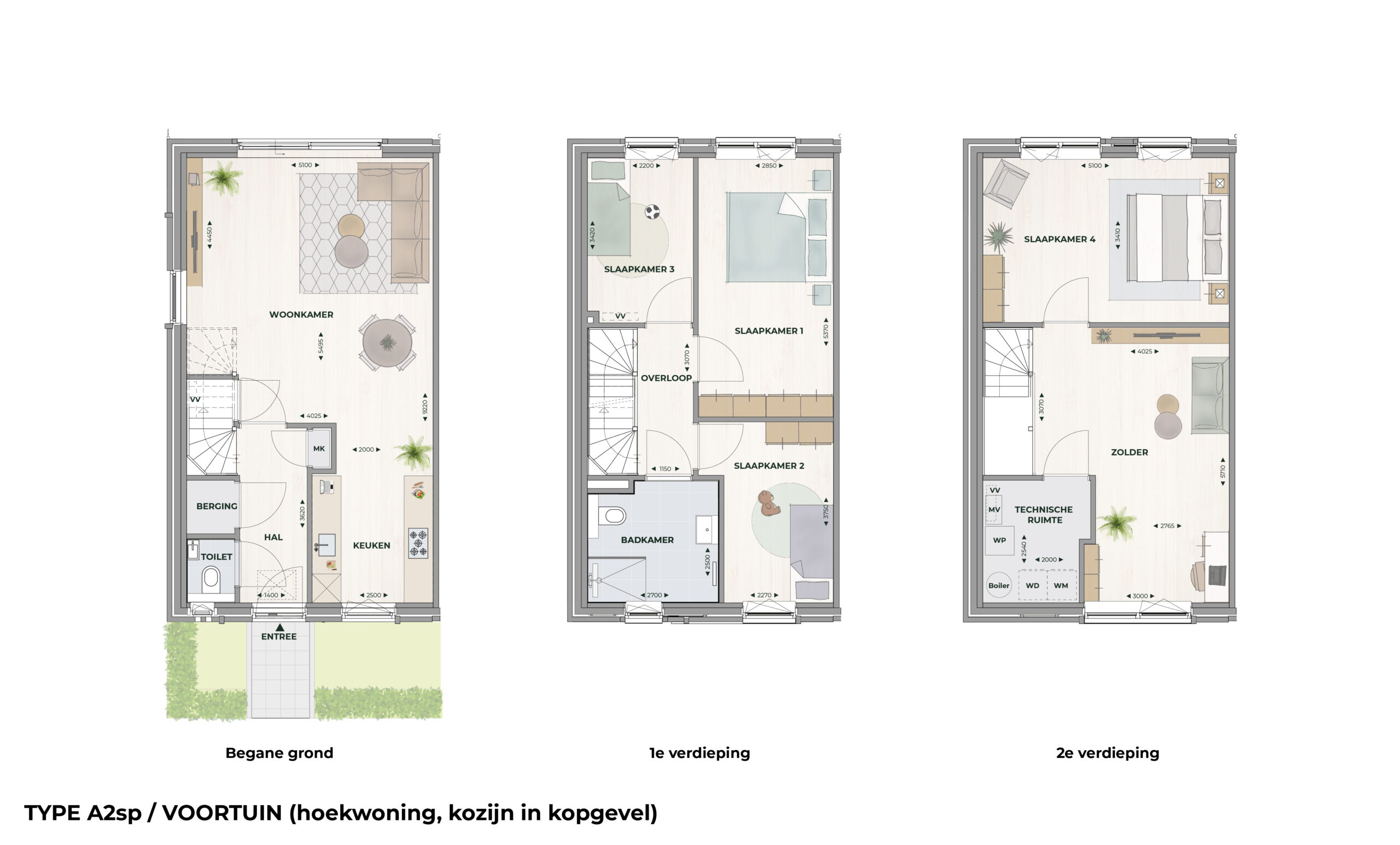 De eerste verdieping biedt drie volwaardige slaapkamers en een ruime, modern ingedeelde badkamer. Op de tweede verdieping vind je een vierde slaapkamer en een aparte techniekruimte. De overige ruimte op zolder is volledig naar eigen smaak en wensen in te richten – ideaal voor een extra werkplek, hobbykamer of bergruimte.