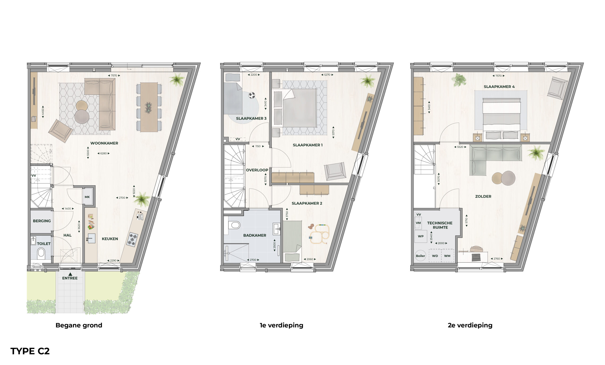 Op de eerste verdieping vind je drie ruime slaapkamers en een moderne badkamer, ideaal voor het hele gezin om zich terug te trekken of samen te ontspannen. De tweede verdieping biedt een vierde slaapkamer en een aparte techniekruimte. De overgebleven zolder kun je helemaal naar wens inrichten: een speelruimte voor de kinderen, een creatieve hobbyhoek of extra bergruimte. Zo voelt het huis altijd gezellig én praktisch.